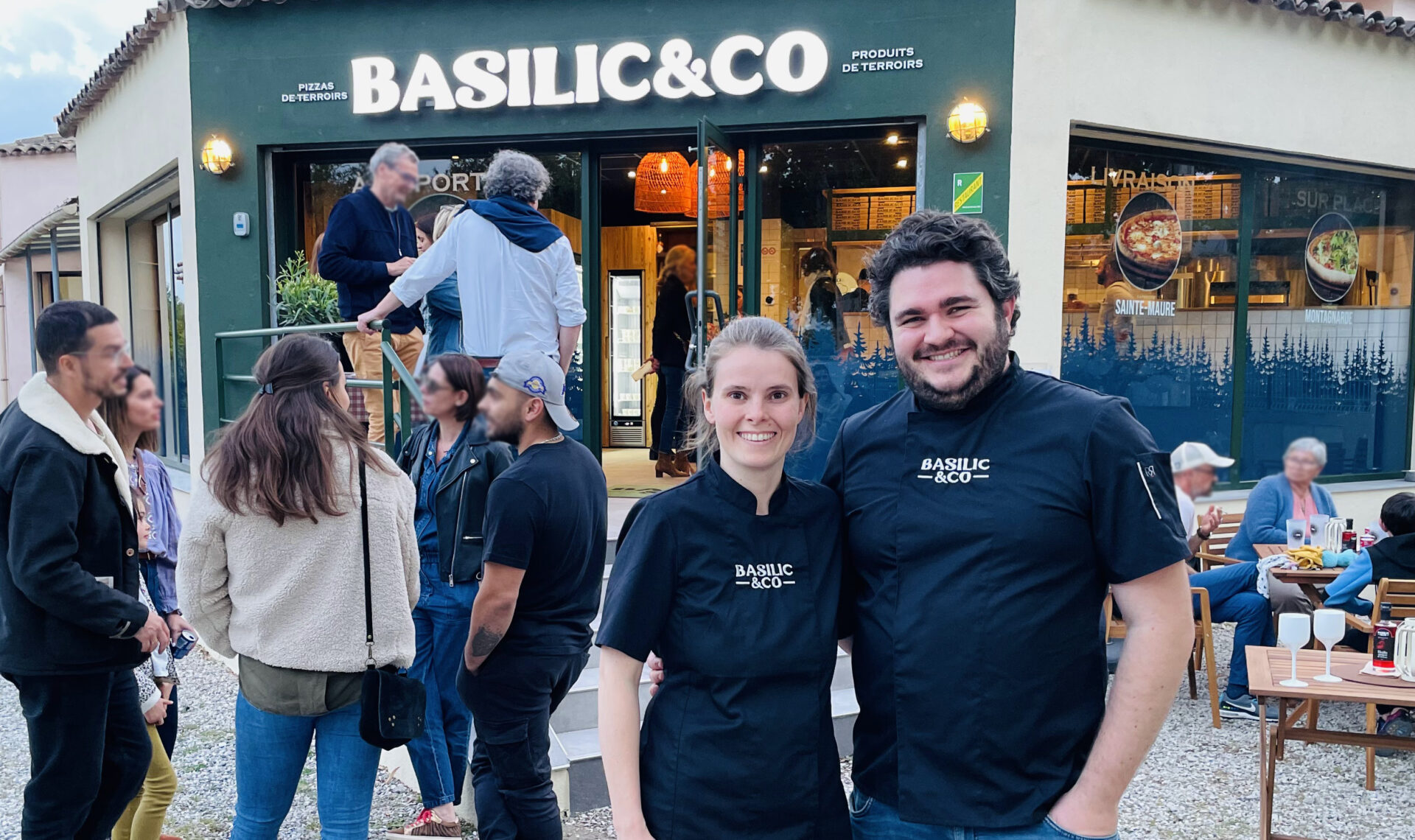 Lucie et Laurent devant leur pizzeria Basilic & Co